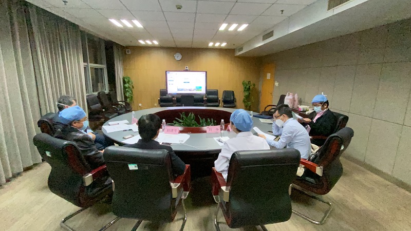 3月26日,華中科技大學(xué)同濟醫(yī)學(xué)院附屬同濟醫(yī)院6位專家與美國進行了視頻連線,圖為連線現(xiàn)場(同濟醫(yī)院供圖)