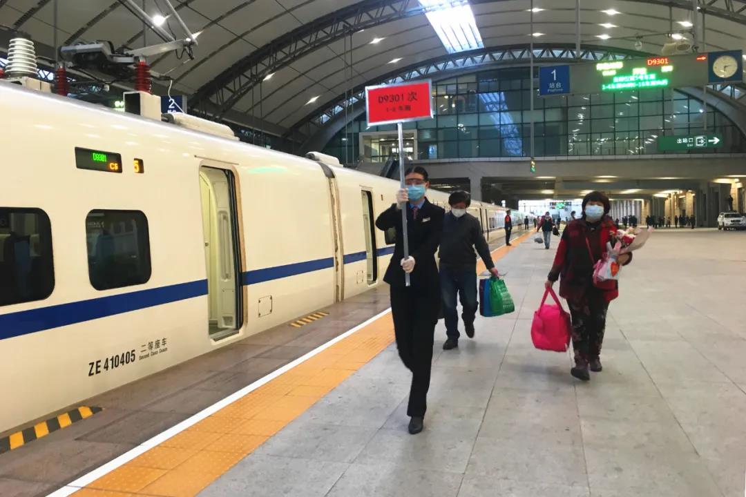 漢口站客運(yùn)人員引導(dǎo)旅客乘坐D9301次列車(國鐵集團(tuán)供圖)