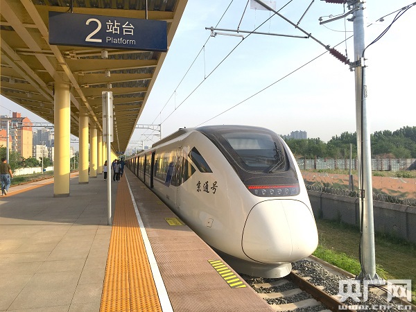 北京市郊鐵路城市副中心線列車(央廣網(wǎng)記者 張佳琪 攝)