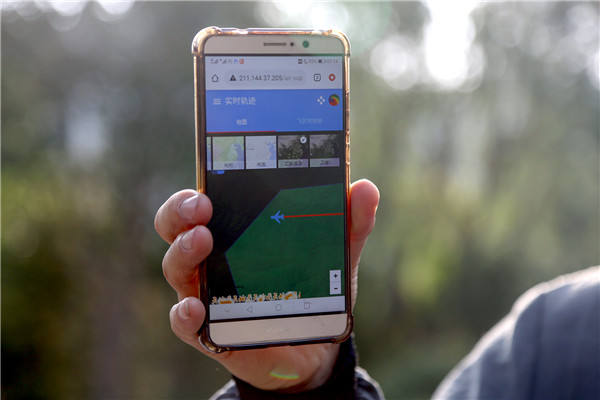 利用飛機防治作業(yè)質(zhì)量監(jiān)測監(jiān)管平臺,飛機起飛后林保人員可在手機端和電腦端實時查看飛防路線、飛防區(qū)域、面積大小以及藥劑噴灑的瞬間流量等情況(央廣網(wǎng)發(fā) 北京市園林綠化局供圖)