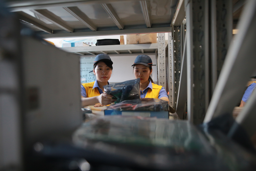 7月5日,萬(wàn)杰、袁萌正在材料室檢查備品備件(央廣網(wǎng)發(fā) 蘇志剛攝)