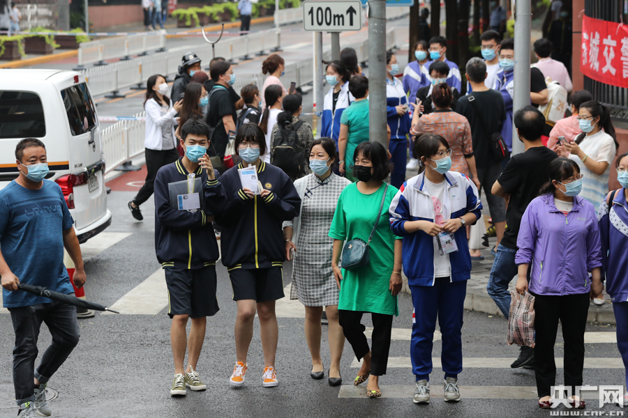 7月9日,北京廣渠門中學(xué)考點,物理科目考試結(jié)束后考生走出考場(央廣網(wǎng)記者 韓靖 攝)