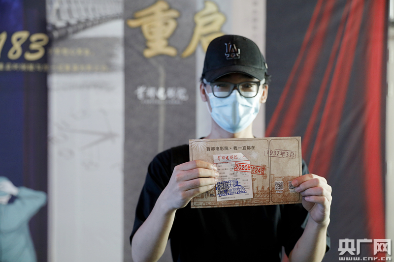 圖為觀眾向記者展示所購電影票(央廣網(wǎng)記者 張凱航 攝)