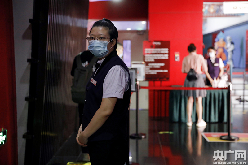 與以往相比,工作人員的“崗位”分布在了影院各個(gè)角落,全力做好健康碼查驗(yàn)、體溫檢測(cè)、觀眾引導(dǎo)等工作。