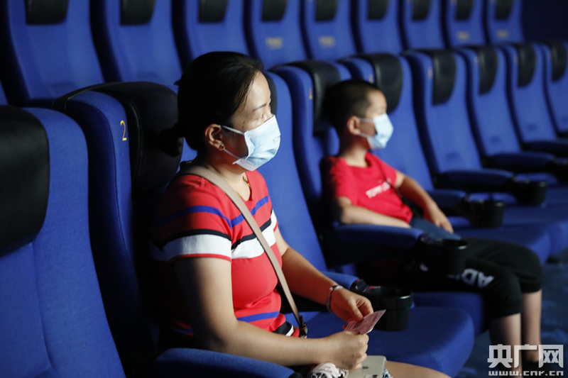 圖為一對(duì)母子在電影院觀看影片(央廣網(wǎng)記者 張凱航 攝)