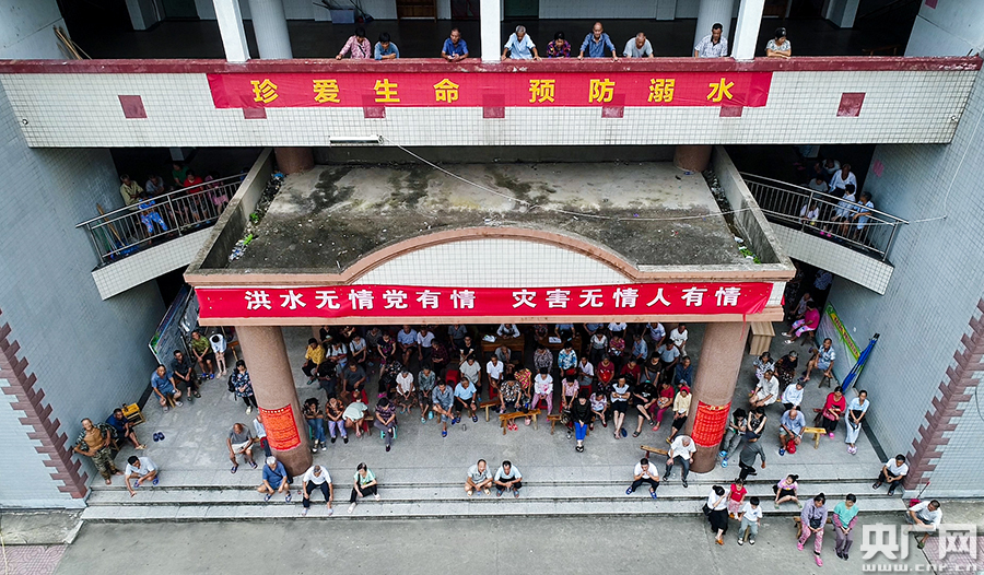 7月26日下午,記者探訪廬江縣內(nèi)最大的安置點——位于湯池鎮(zhèn)的湯池中學(xué)。剛進學(xué)校大門,記者就看到教學(xué)樓前成排坐滿老人,對面的戲臺上正在上演黃梅戲。這是湯池鎮(zhèn)為安置點安排的文娛活動。黃梅戲演到精彩處時,人群中響起笑聲。樓上的棋牌室內(nèi),幾個村民正在打牌。隔壁的圖書室里,志愿者正在陪孩子看書。