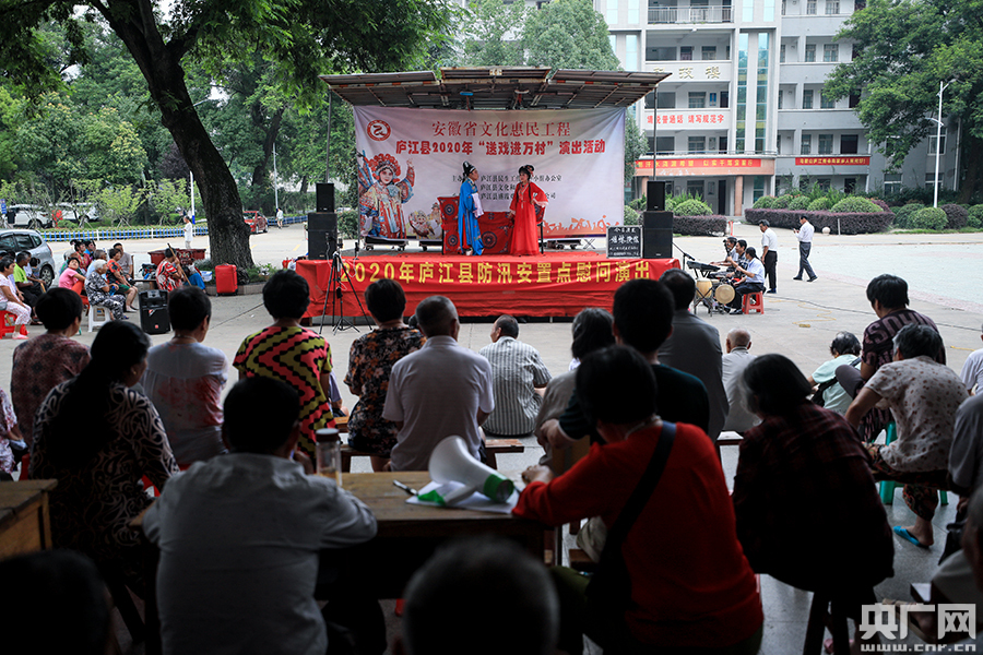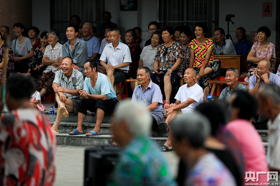 人們在安置點觀看黃梅戲(央廣網(wǎng)記者石昊鑫 攝)