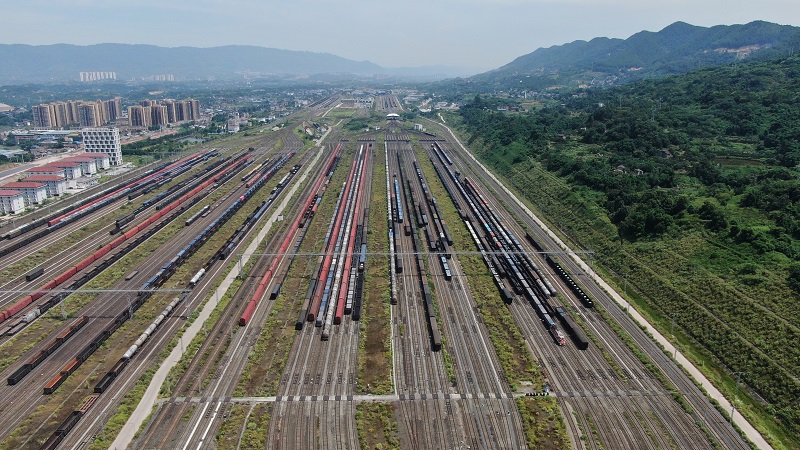 沙坪壩區(qū)的興隆場(chǎng)編組場(chǎng)(央廣網(wǎng)發(fā) 蘇志剛 攝)