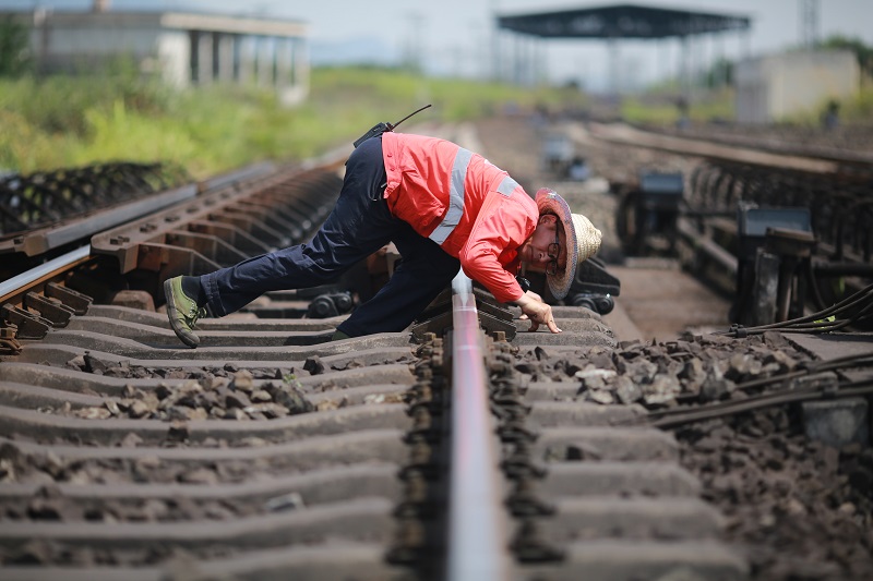 工人正在檢修鐵軌(央廣網(wǎng)發(fā) 蘇志剛 攝)