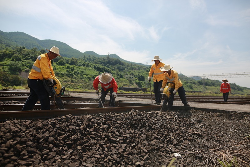央廣網(wǎng)北京8月8日消息(記者韓靖 通訊員羅浪)進(jìn)入8月以來(lái),山城重慶持續(xù)高溫天氣,開(kāi)啟“火爐”模式。位于沙坪壩區(qū)的興隆場(chǎng)編組場(chǎng),擔(dān)負(fù)著中歐班列(重慶)、陸海新通道、沿江班列的編組任務(wù)。連日來(lái),氣溫接近39℃,重慶工務(wù)段興隆場(chǎng)線路車間線路巡養(yǎng)三工區(qū),正迎戰(zhàn)“高烤”,工人們揮汗如雨,在編組場(chǎng)里進(jìn)行起道搗固、設(shè)備巡檢作業(yè)。