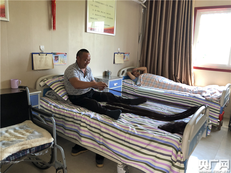 托養(yǎng)中心就設(shè)在雷獻(xiàn)春所在的村子對面,面積不大,但綠樹掩映的小院敞亮干凈,記者從掛在房間外面的資料欄里看到,她負(fù)責(zé)的一間托養(yǎng)房屋內(nèi)有兩名男性,其中一位便是他的父親。再走進(jìn)室內(nèi)看,液晶電視、空調(diào)等設(shè)施一應(yīng)俱全!斑@兒有專人做飯,自動升降床也很方便,很多地方都有無障礙設(shè)施!