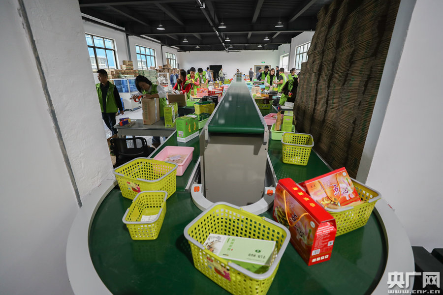 隴小南網(wǎng)貨供應(yīng)中心車間流水線(央廣網(wǎng)記者 韓靖 攝)