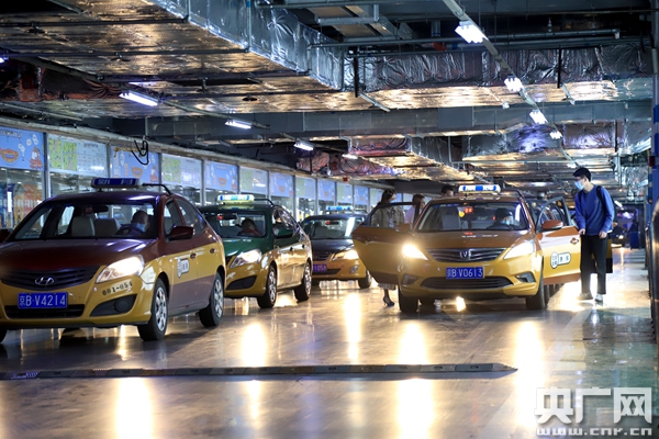 多家出租車(chē)公司調(diào)派了600輛出租車(chē),對(duì)8日晚間的返京大客流進(jìn)行保障運(yùn)輸(央廣網(wǎng)記者 張佳琪 攝)