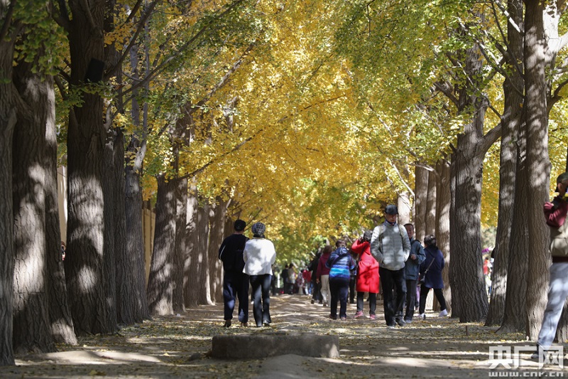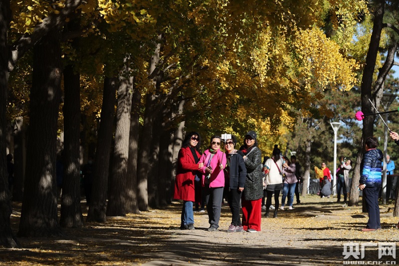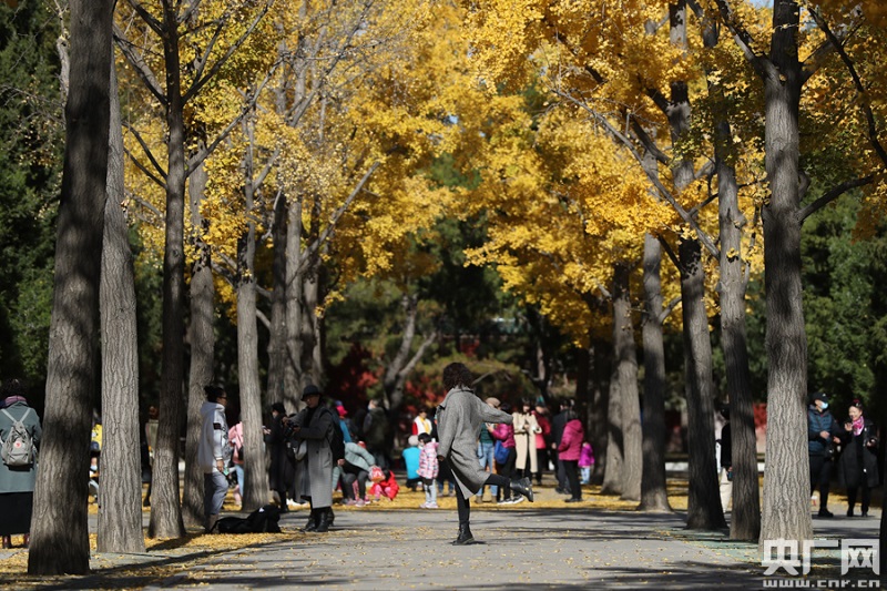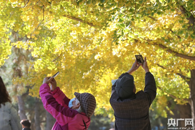 11月3日,釣魚臺(tái)銀杏大道,市民們前來(lái)欣賞銀杏景觀(央廣網(wǎng)記者 韓靖 攝)
