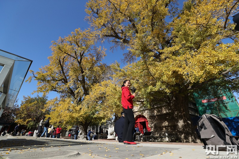 11月3日,五塔寺,市民在古銀杏樹下拍照(央廣網(wǎng)記者 韓靖 攝)