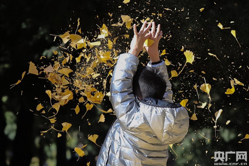 11月3日,地壇公園,一個(gè)小男孩在銀杏樹下玩耍(央廣網(wǎng)記者 韓靖 攝)