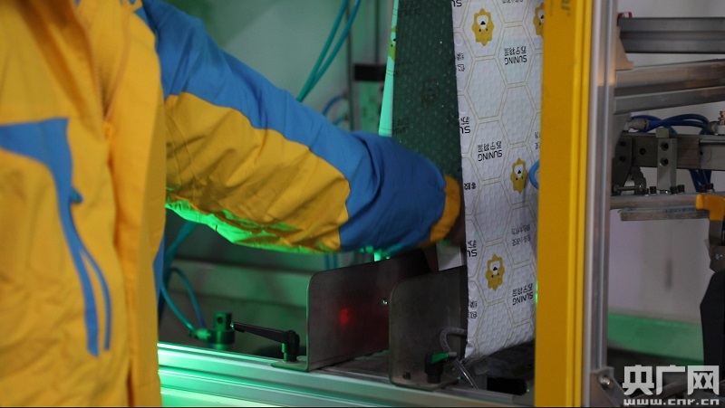 視覺掃描設(shè)備,也被稱為“狂掃機(jī)”,可自動采集條碼信息,提高商品出庫速度(央廣網(wǎng)記者 王晶 攝)