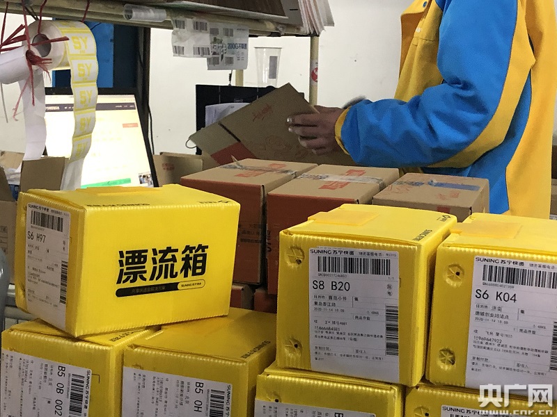 11月11日,蘇寧通州物流基地,這種料箱可代替紙箱裝載消費者購買的商品,滿足快遞綠色化的要求(央廣網(wǎng)記者 黃一博 攝)