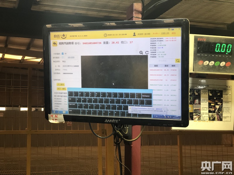 11月11日,中通快遞京南轉(zhuǎn)運中心(涿州),該中心自動分揀設(shè)備分為上下兩層,自動化分揀設(shè)備的單線體規(guī)模為亞洲最大(央廣網(wǎng)記者 黃一博 攝)