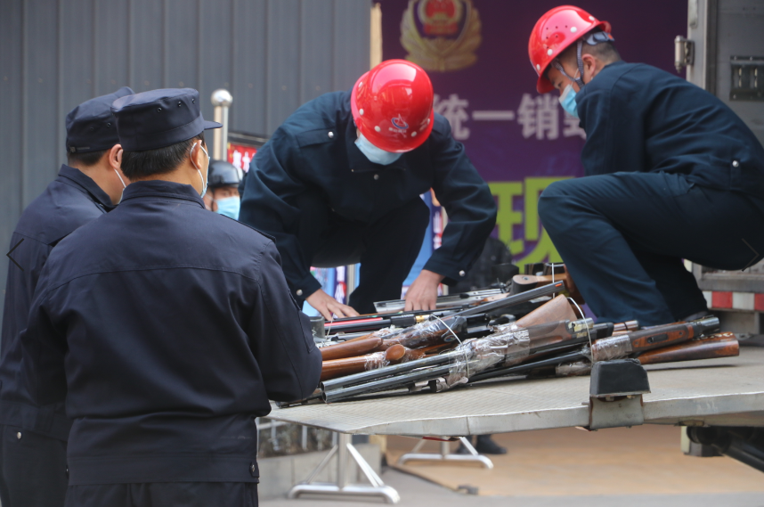 公安部組織全國153個(gè)城市同步開展集中統(tǒng)一銷毀非法槍爆物品活動(dòng)(央廣網(wǎng)發(fā) 公安部供圖)