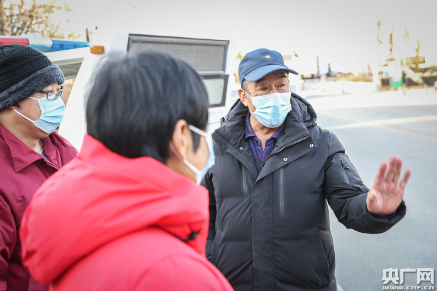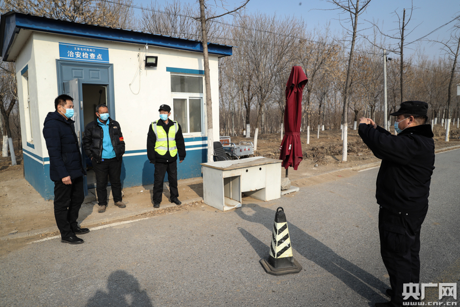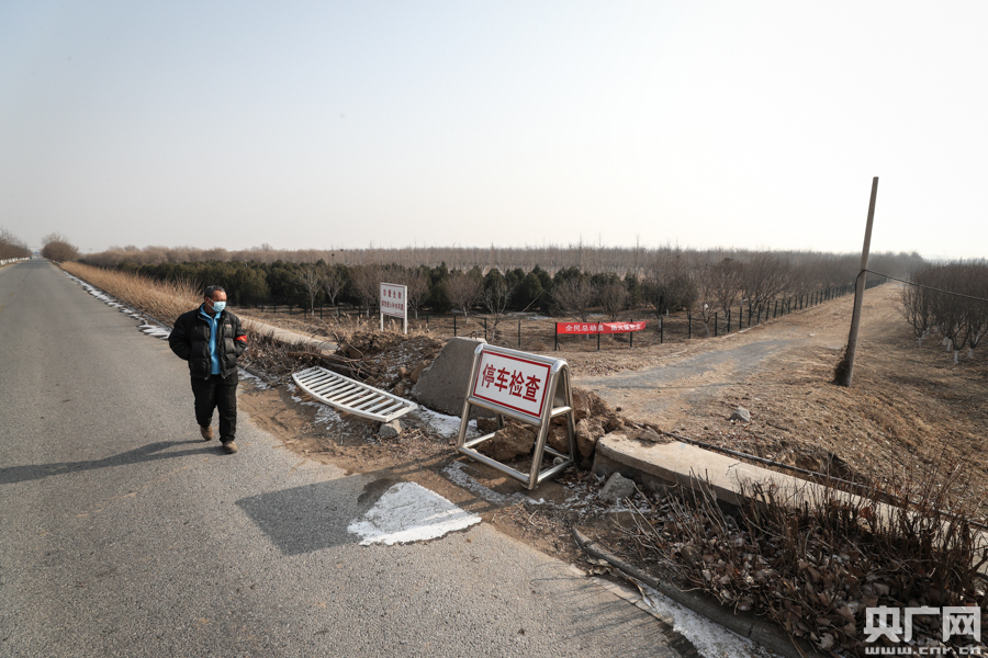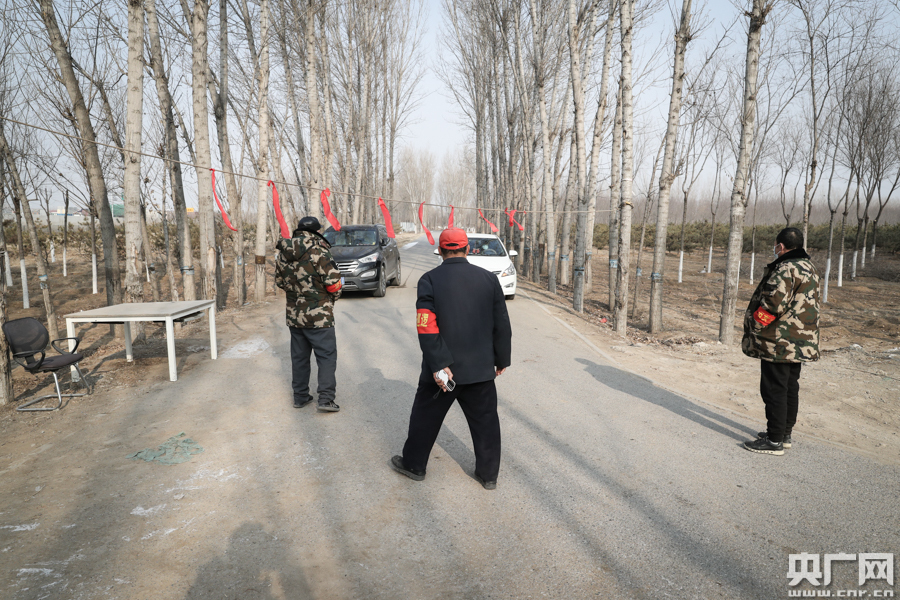 防疫人員楊福祿正在田家營村西南卡口執(zhí)勤(央廣網記者 韓靖 攝)