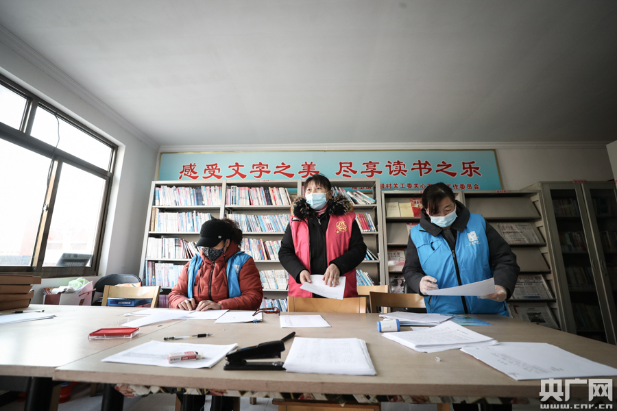 王紅梅(中)正在和隊員們進行疫情數(shù)據統(tǒng)計(央廣網記者 韓靖 攝)