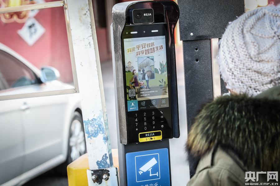 村民通過人臉識別系統(tǒng)“刷臉”進村(央廣網記者 韓靖 攝)