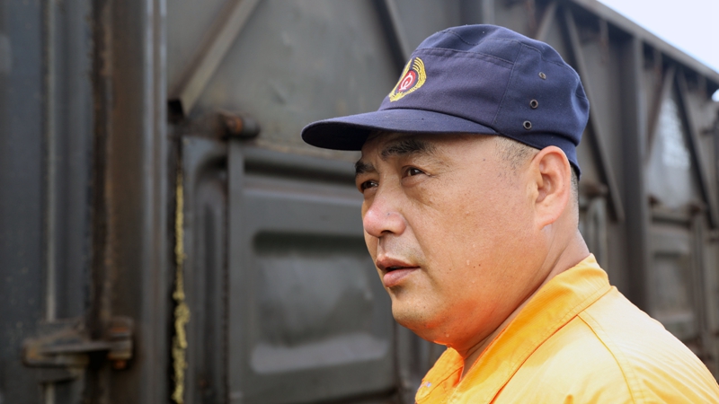 調(diào)車人員被汗水浸濕了外套(央廣網(wǎng)發(fā) 沈陽鐵路供圖)