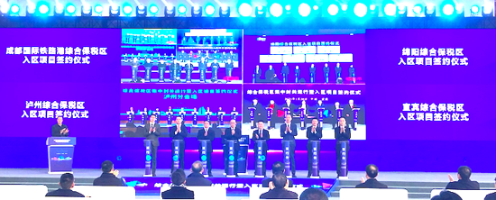 成都國(guó)際鐵路港綜合保稅區(qū)、綿陽(yáng)綜合保稅區(qū)、瀘州綜合保稅區(qū)、宜賓綜合保稅區(qū)正式封關(guān)運(yùn)行,F(xiàn)場(chǎng)共選取26個(gè)入?yún)^(qū)項(xiàng)目集中簽約,總投資64.4億元,主要涉及醫(yī)療器械、新材料、電子信息等領(lǐng)域。