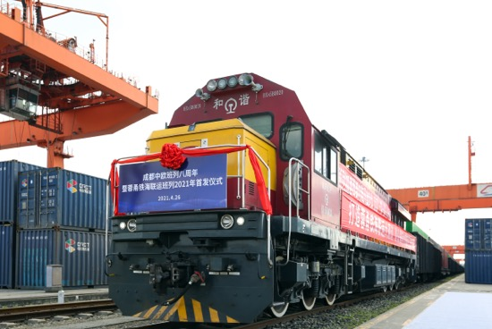 2021年首班“蓉甬”鐵海聯(lián)運(yùn)班列從成都發(fā)出