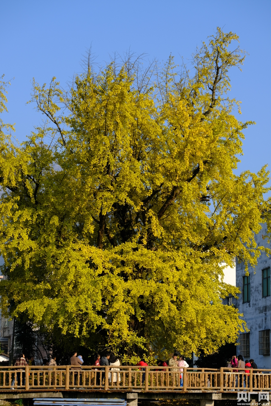千年銀杏開始“變裝”(央廣網(wǎng)發(fā) 通訊員供圖)