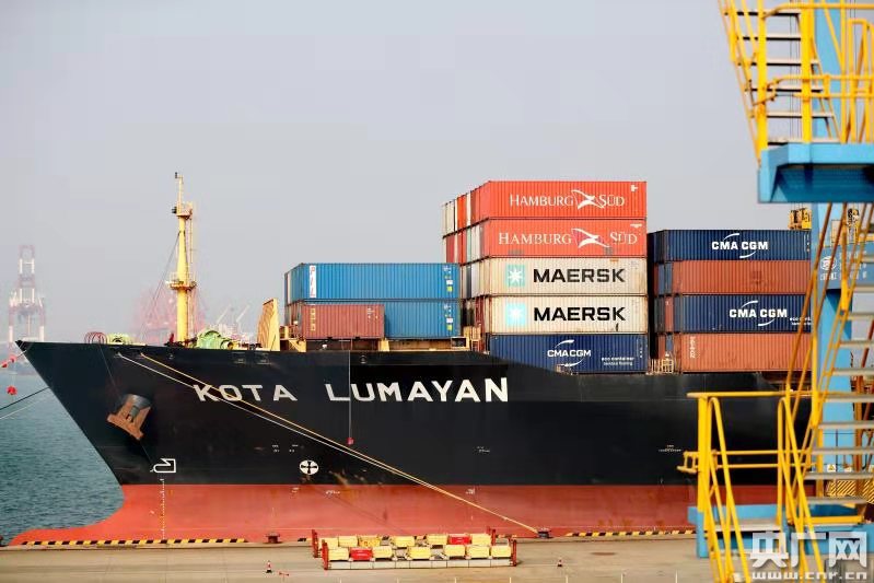 12月10日,位于青島前灣綜合保稅區(qū)封關(guān)范圍內(nèi)的山東港口青島港全自動化集裝箱碼頭,數(shù)艘外輪正在裝載出口貨物。(央廣網(wǎng)發(fā) 張進(jìn)剛 攝)