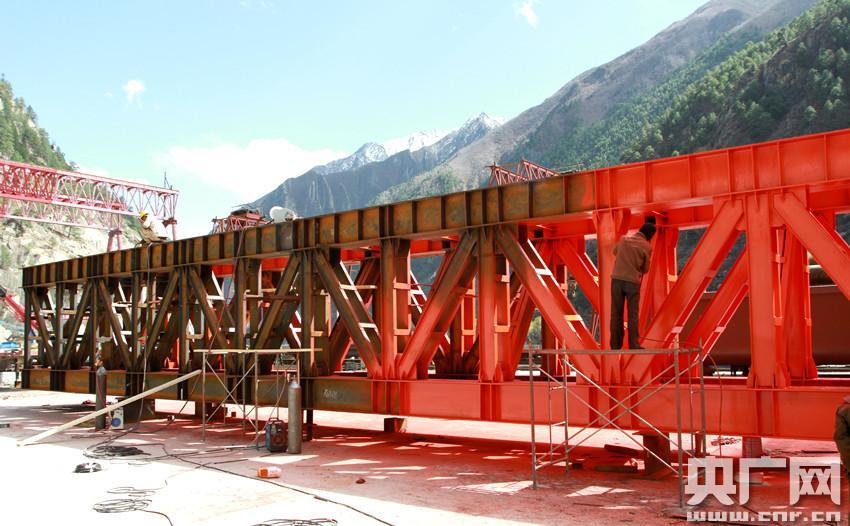 工人們正在加工橋梁部件(央廣網(wǎng)發(fā)普布次仁 攝) 央廣網(wǎng)4月18日消息(記者普布次仁)拉林鐵路是川藏鐵路的重要組成部分,項(xiàng)目總投資366億元,于2014年12月19日開(kāi)工建設(shè),正線全長(zhǎng)402km,建設(shè)總工期為7年。從拉薩至林芝沿雅魯藏布江而下的拉林鐵路,建成后不僅將成為“藏源雅礱”到“雪域江南”又一天路,控制性工程之一的藏木特大橋還將創(chuàng)下鐵路橋梁中中承式提籃鋼管混凝土拱橋世界記錄。 拉林鐵路線路從拉日鐵路協(xié)榮站引出,向南穿過(guò)岡底斯山余脈進(jìn)入雅魯藏布江河谷,于貢嘎跨過(guò)雅魯藏布江后,向東經(jīng)扎囊、乃東、桑日、加查、朗縣、米林至林芝。鐵路90%以上路段位于海拔3000米以上的高原地區(qū),穿越高烈度地震帶和地質(zhì)斷裂帶,施工難度極大。拉林鐵路建設(shè)總指揮部副指揮長(zhǎng)兼總工程師王睿:“到山南這一段一個(gè)是隧道,風(fēng)積沙全是松散的,另外橋剛打下去你鉆頭拉上來(lái),底下又合到一起了,橋基就很難施工。高低溫,巖石溫度最高的桑珠嶺隧道89度多。這個(gè)地方的巖爆壓力強(qiáng)度非常大,4噸多的臺(tái)車巖石就能把他炸的飛起來(lái),軟巖的情況下就成了軟巖大變形,90平米斷面,過(guò)兩天去看就只有80平米了! 拉林鐵路中橋隧總長(zhǎng)301km,橋隧比為74.8%。桑珠嶺隧道是拉林鐵路五標(biāo)主要工程,全長(zhǎng)16.449公里。隧道存在巖爆、高地溫、溫泉水等不良地質(zhì),為I級(jí)風(fēng)險(xiǎn)隧道。記者來(lái)到隧道時(shí)洞內(nèi)溫度在60度,工人們正在熱火朝天的進(jìn)行施工。“當(dāng)時(shí)測(cè)溫度冒熱氣,就拿了個(gè)土雞蛋,鐵絲綁起伸進(jìn)去五分鐘就是熟的,當(dāng)時(shí)就可以吃!彼淼蓝(duì)技術(shù)負(fù)責(zé)人玄龍如是說(shuō)。 拉林鐵路建設(shè)創(chuàng)新了6項(xiàng)國(guó)內(nèi)領(lǐng)先的施工工藝工法,攻克了諸多施工難題。位于桑加峽谷區(qū)的藏木特大橋是全線施工難度最大的橋梁,該橋是我國(guó)國(guó)內(nèi)大跨度橋梁中首次采用耐候鋼和主拱鋼管采用變直徑鋼管,橋梁建成后將創(chuàng)下鐵路橋梁中中承式提籃鋼管混凝土拱橋世界記錄。中鐵港航局拉林指揮部副指揮長(zhǎng)張立軍介紹:“合攏預(yù)計(jì)明年四月,冬季有幾個(gè)方面原因不能架拱,風(fēng)特別大,安全和穩(wěn)定性有影響。這種鋼材一般是5度以上可以焊接,鋼管拱內(nèi)的混凝土采用的是無(wú)收縮、自密實(shí)混凝土,不會(huì)收縮,抗壓強(qiáng)度達(dá)到60兆帕,這個(gè)是一個(gè)特殊工藝! 拉林鐵路是國(guó)家中長(zhǎng)期鐵路網(wǎng)規(guī)劃中川藏鐵路和滇藏鐵路的重要組成部分,是西藏與川渝黔等地客貨交流的主要通道,截止今年3月底,全線供完成投資128.35億元,占初步設(shè)計(jì)概算的37.4%。鐵路建成后,對(duì)于完善西藏鐵路網(wǎng)結(jié)構(gòu),促進(jìn)西藏經(jīng)濟(jì)社會(huì)發(fā)展具有重要意義。西藏自治區(qū)發(fā)改委鐵路辦副主任格桑次旺表示:“鐵路是重要的一個(gè)民生工程,在促進(jìn)區(qū)域發(fā)展民間交流有不可代替的作用。拉林鐵路將緩解青藏鐵路運(yùn)輸壓力。通過(guò)鐵路國(guó)道318的資源將得到更深層、更有效的開(kāi)發(fā),川藏鐵路將成我國(guó)的又一景觀大道。”