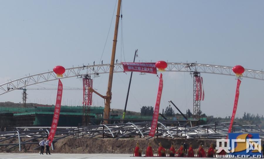 上梁儀式(央廣網(wǎng)記者廉軍 攝) 央廣網(wǎng)銀川7月17日消息(記者廉軍)寧夏回族自治區(qū)成立60周年獻(xiàn)禮工程、銀川市政府重點招商引資項目—“天山海世界·黃河明珠”主體建筑戲水樂園上梁儀式,16日在濱河新區(qū)黃河?xùn)|岸邊隆重舉行,標(biāo)志著海世界的建設(shè)取得了突破性進(jìn)展。自治區(qū)、銀川市和濱河新區(qū)管委會的相關(guān)領(lǐng)導(dǎo)及主流主流媒體、商界代表等上千人到場。 -