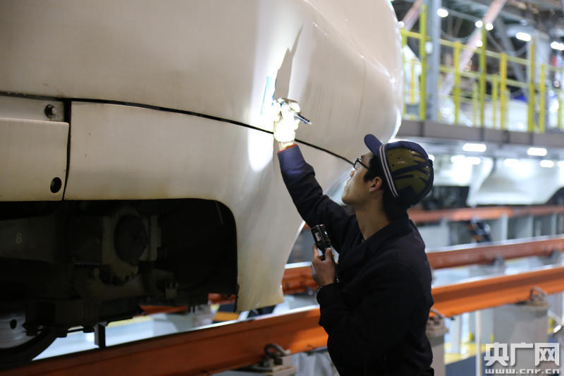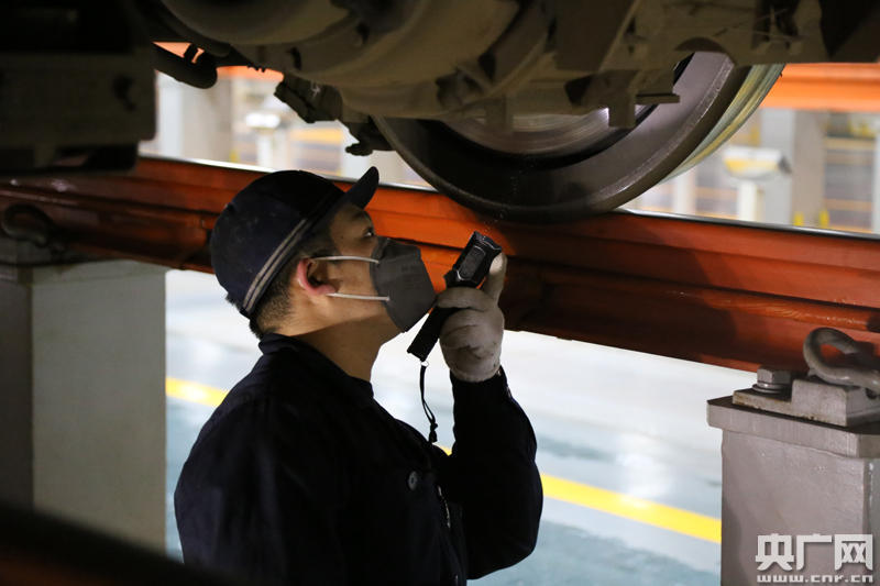 地勤機(jī)械師正在認(rèn)真檢查剛?cè)霂斓膭?dòng)車組 央廣網(wǎng)南寧1月30日消息(記者許大為 通訊員覃付剛 石濟(jì)銘)為了確保春運(yùn)期間動(dòng)車運(yùn)行安全,中國鐵路南寧局集團(tuán)有限公司所屬的桂林動(dòng)車所加強(qiáng)調(diào)度指揮工作,做好人力調(diào)配,強(qiáng)化夜間入庫動(dòng)車的檢查保養(yǎng)工作。工作人員加強(qiáng)了對(duì)動(dòng)車上的各項(xiàng)設(shè)備、設(shè)施進(jìn)行全面整修,消除安全隱患,確保動(dòng)車組以整潔、安全的狀態(tài)投入到春運(yùn)工作中。 -
