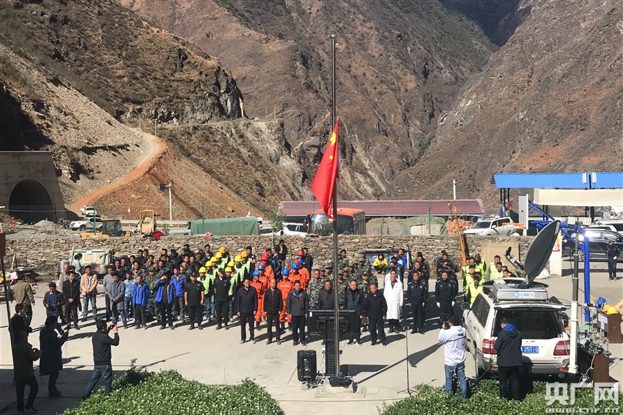 4月4日上午,四川木里縣雅礱江鎮(zhèn)森林火災(zāi)前線指揮部降半旗志哀撲火英雄。