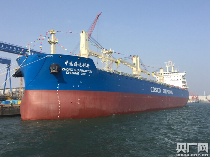 央廣網(wǎng)大連4月18日消息(記者賈鐵生)4月18日,大連中遠(yuǎn)海運(yùn)重工為中遠(yuǎn)海運(yùn)特運(yùn)設(shè)計(jì)建造的2號(hào)6.2萬(wàn)噸多用途紙漿船“中遠(yuǎn)海運(yùn)創(chuàng)新”輪命名交付。該系列船為目前中國(guó)船廠建造交付的最大多用途紙漿船,首制船已于1月11日交付船東。