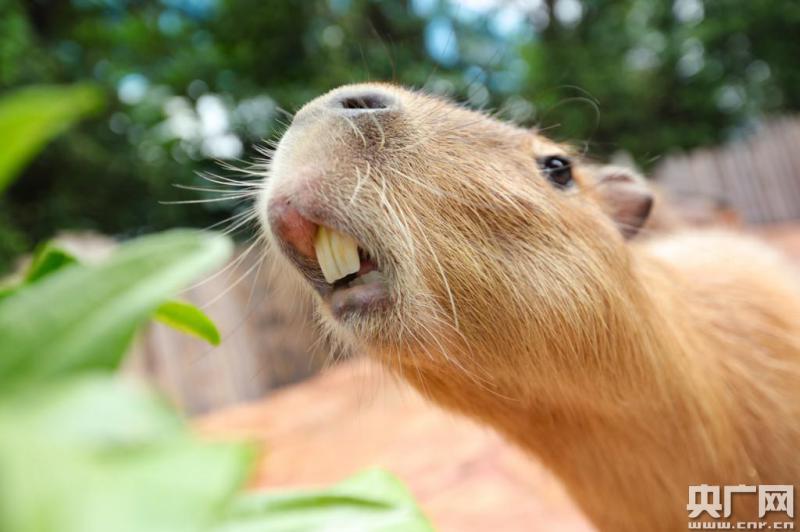 據(jù)介紹,水豚是“世界上最大的嚙齒動物”,成年體重最大可達132斤,身長可超過134cm,因此總是被戲稱為世界上最大的“老鼠”。水豚憨態(tài)可掬,最常見的狀態(tài)就是露出四只大板牙不停吃吃吃,很是魔性,被封為新一代“網(wǎng)紅”。