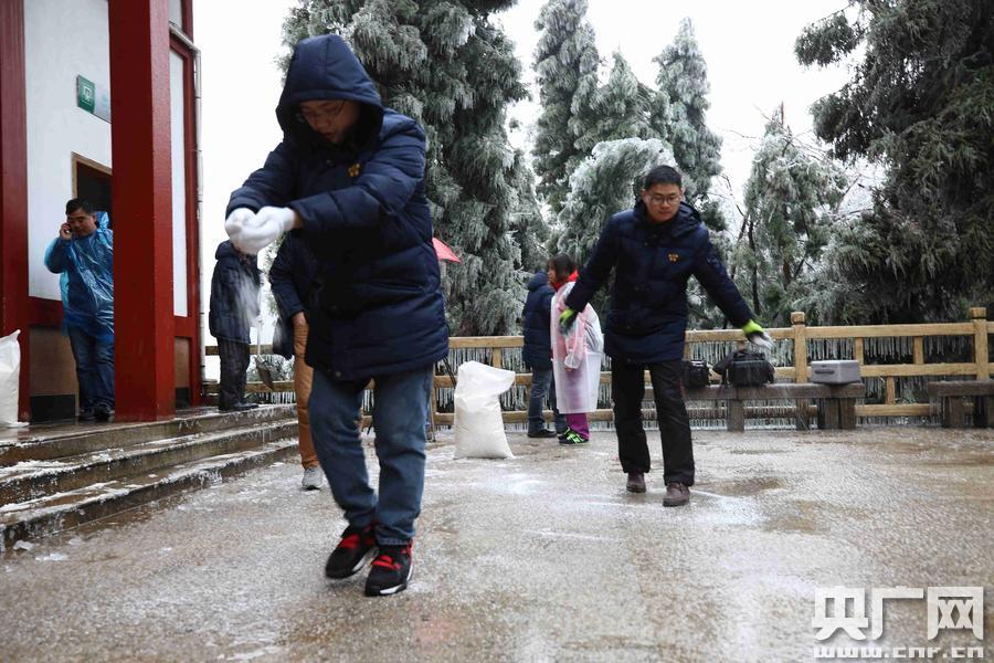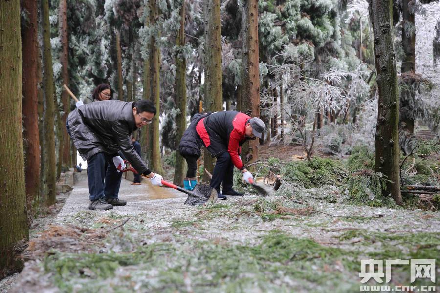 •      湖南張家界景區(qū)緊急除冰保安全   央廣網(wǎng)張家界2月23日消息(記者傅蕾 通訊員吳勇兵)受降溫降雨天氣影響,張家界武陵源黃石寨、天子山等景區(qū)游道路面出現(xiàn)冰凍現(xiàn)象,當(dāng)?shù)鼐皡^(qū)管理部門(mén)迅速組織力量對(duì)游道進(jìn)行除冰,清理被冰掛壓斷的樹(shù)枝,使景區(qū)游覽秩序盡快得到恢復(fù)。
