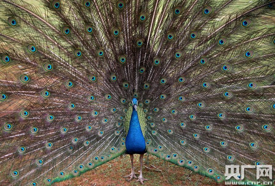 孔雀競(jìng)相展翅開屏(央廣網(wǎng)發(fā) 李騰飛攝) -