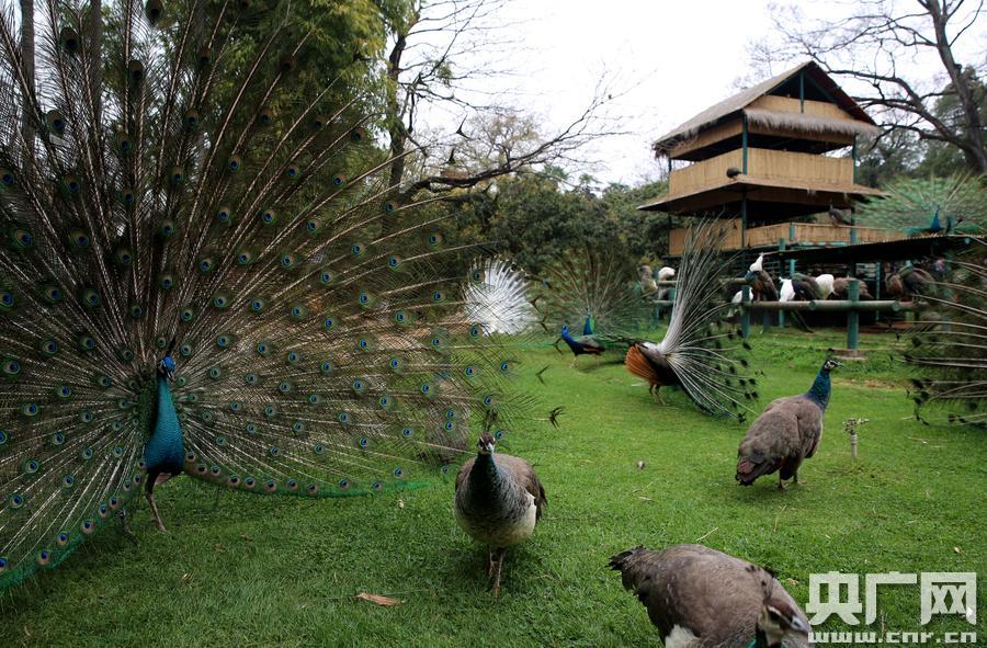 昆明圓通動(dòng)物園櫻花綻放(央廣網(wǎng)發(fā) 李騰飛攝) 像爭(zhēng)春的花兒一樣,昆明圓通動(dòng)物園的孔雀也耐不住寂寞,競(jìng)相展翅開屏。伸伸筋骨,揉揉身板,欣欣然,互不相讓,都睜開了賞春的眼晴。 -