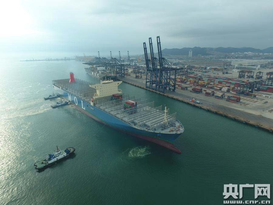 全球最大集裝箱船首靠大連港 滿(mǎn)載能力超2萬(wàn)標(biāo)準(zhǔn)箱 央廣網(wǎng)大連4月5日消息(記者田彤 賈鐵生 通訊員臧永亮)繼3月1日順利接卸全球最大油輪“泰歐”之后,大連港再迎“全球之最”。4月5日上午,全球第三大航運(yùn)聯(lián)盟——THE聯(lián)盟“大連—?dú)W洲”遠(yuǎn)洋干線(xiàn)的首航船舶,全球最大集裝箱船“商船三井成就(MOL Triumph)”輪靠泊大窯灣集裝箱二期碼頭。THE聯(lián)盟“大連—?dú)W洲”遠(yuǎn)洋干線(xiàn)輻射東南亞、聯(lián)通歐洲,為“21世紀(jì)海上絲綢之路”打通了又一條海上運(yùn)輸通道。 據(jù)悉,“商船三井成就”輪船長(zhǎng)400米,船寬58.8米,滿(mǎn)載能力達(dá)到20170標(biāo)準(zhǔn)箱,為目前全球最大的集裝箱船舶。該輪于今年3月27日正式交付使用,是全球首艘投入運(yùn)營(yíng)的超過(guò)2萬(wàn)標(biāo)準(zhǔn)箱集裝箱船,率先開(kāi)啟了“2萬(wàn)標(biāo)準(zhǔn)箱船時(shí)代”。 目前,大連港已建成45萬(wàn)噸原油碼頭、40萬(wàn)噸礦石碼頭等一批世界級(jí)碼頭泊位,實(shí)現(xiàn)了“世界上有多大的船,大連港就有多大的碼頭”的發(fā)展夙愿,其中集裝箱專(zhuān)業(yè)化泊位18個(gè),泊位最大水深-17.8米,可以滿(mǎn)足目前世界所有在航集裝箱船舶靠泊。包括此次開(kāi)通的“大連—?dú)W洲”航線(xiàn),大連港集裝箱內(nèi)外貿(mào)航線(xiàn)總數(shù)達(dá)到106條,航線(xiàn)網(wǎng)絡(luò)覆蓋全球160多個(gè)國(guó)家和地區(qū)的300多個(gè)港口,航班密度500班/月,東北地區(qū)98.5%以上的外貿(mào)集裝箱經(jīng)大連港轉(zhuǎn)運(yùn)。與此同時(shí),大連港還構(gòu)建了覆蓋遼寧、河北、山東地區(qū)15個(gè)港口的內(nèi)支線(xiàn)中轉(zhuǎn)網(wǎng)絡(luò),形成環(huán)渤海地區(qū)“海上穿梭巴士”,和以沈陽(yáng)、長(zhǎng)春、哈爾濱、通遼為核心,輻射東北全域的“4大中心、12大場(chǎng)站、31個(gè)站點(diǎn)”的內(nèi)陸布局體系,擁有集裝箱班列線(xiàn)路41條,國(guó)際集裝箱樞紐港建設(shè)成效顯著,助力東北乃至環(huán)渤海地區(qū)對(duì)外開(kāi)放水平的持續(xù)提升。 今年一季度,大連港累計(jì)接卸裝載能力1萬(wàn)標(biāo)準(zhǔn)箱以上船舶58艘次,其中,1.8萬(wàn)標(biāo)準(zhǔn)箱以上的超大型集裝箱船達(dá)到12艘次。 據(jù)悉,THE聯(lián)盟是全球三大航運(yùn)聯(lián)盟之一,由赫伯羅特、陽(yáng)明海運(yùn)、商船三井、日本郵船、川崎汽船五大航運(yùn)集團(tuán)組建而成,旗下總運(yùn)力達(dá)350萬(wàn)標(biāo)箱,占全球集裝箱船隊(duì)規(guī)模的18%。今年4月THE聯(lián)盟正式運(yùn)營(yíng)伊始,即在大連口岸開(kāi)辟美線(xiàn)、歐線(xiàn)各一條,其中美西航線(xiàn)填補(bǔ)了大連港航線(xiàn)網(wǎng)絡(luò)的空白,使原來(lái)通過(guò)韓國(guó)釜山中轉(zhuǎn)的貨物可以直航到達(dá)美西港口,進(jìn)一步提升物流服務(wù)水平,降低我國(guó)外貿(mào)綜合物流成本,為大連東北亞國(guó)際航運(yùn)中心建設(shè)增添了重要砝碼。