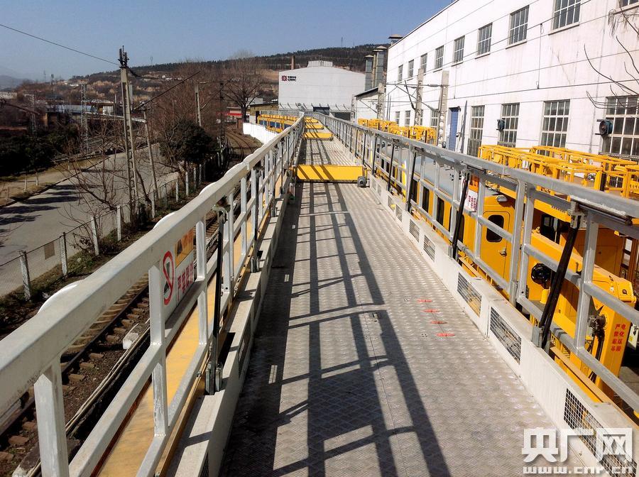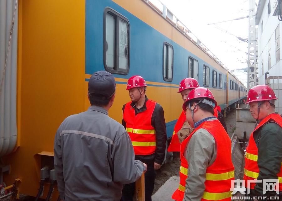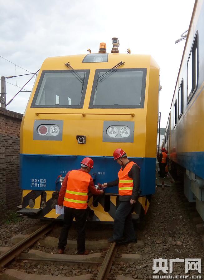 西南地區(qū)首臺接觸網(wǎng)綜合檢修列配屬成都供電段(何躍光 攝) 央廣網(wǎng)重慶4月22日消息(記者劉湛 通訊員胡志強)近日,西南地區(qū)首臺JJC型接觸網(wǎng)綜合檢修列配屬成都鐵路局成都供電段,標志著供電檢修科技裝備保障、修程修制改革創(chuàng)新引領(lǐng)進入新時代。 據(jù)了解,接觸網(wǎng)綜合檢修列由過去的單臺接觸網(wǎng)作業(yè)車獨立作業(yè)、編組作業(yè)車分段作業(yè)改為整車推進、“大兵團”集中作業(yè)模式,實現(xiàn)了設(shè)備檢查檢測和維修保養(yǎng)同步,徹底改變了傳統(tǒng)接觸網(wǎng)檢修作業(yè)模式。該檢修列由2臺接觸網(wǎng)動力作業(yè)車和10列接觸網(wǎng)作業(yè)平臺車混合編組而成,集機車牽引、料具儲備、職工餐飲、作業(yè)控制、會議辦公等多項功能于一體,整車可滿足56人宿營。 “接觸網(wǎng)綜合檢修列非常適用于西南山區(qū)鐵路接觸網(wǎng)集中修作業(yè),整車除自帶兩臺大容量發(fā)電機外,還可以直接從鐵路接觸網(wǎng)上取流,為全車提供照明、作業(yè)和生活用電! 成都供電段設(shè)備科科長何躍光說。 -