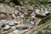 馱著石材的馬隊(duì)趟過(guò)小河進(jìn)山。