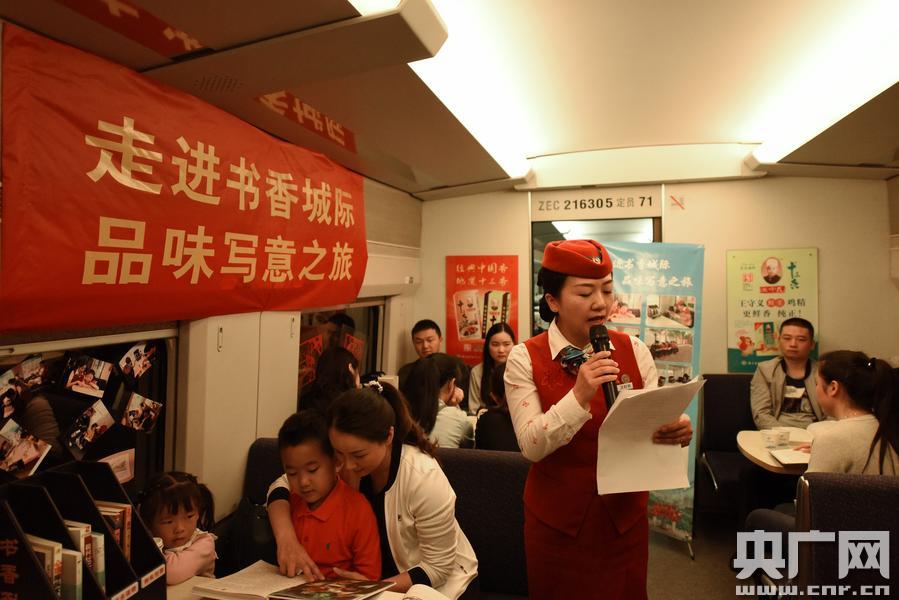 武漢客運(yùn)段:列車(chē)書(shū)香分享行進(jìn)之美 央廣網(wǎng)武漢4月25日消息(記者張毛清 通訊員易娜 蘇杭)近日,武漢鐵路局武漢客運(yùn)段在流動(dòng)的類(lèi)車(chē)上開(kāi)展了“走進(jìn)書(shū)香城際 品味寫(xiě)意之旅”為主題的讀書(shū)活動(dòng)。武漢客運(yùn)段負(fù)責(zé)人表示,在流動(dòng)的車(chē)廂里與廣大旅客分享閱讀之美的讀書(shū)活動(dòng)將會(huì)常態(tài)化、規(guī);。 -