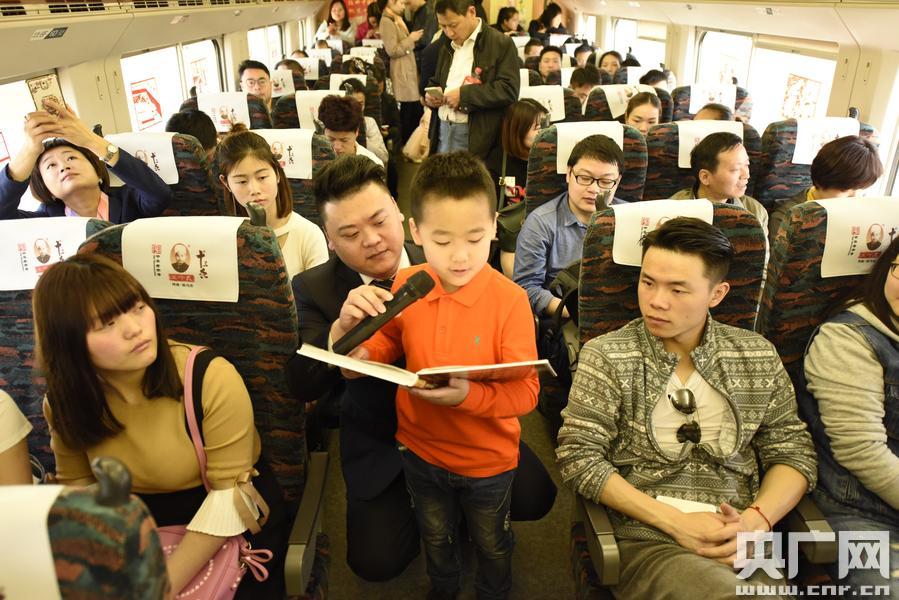 武漢客運(yùn)段:列車(chē)書(shū)香分享行進(jìn)之美 “我想把汪國(guó)真的《感謝》獻(xiàn)給我的妻子,感謝她為我孕育我們的下一代,感謝她為家庭的辛苦付出。讓我怎樣感謝你,當(dāng)我走向你的時(shí)候……”來(lái)自河南的曹先生動(dòng)情地朗誦到。他表示,非常開(kāi)心能參與到書(shū)香城際讀書(shū)活動(dòng)中。這次的出行經(jīng)歷讓他印象深刻,他認(rèn)為閱讀能夠真實(shí)地抒發(fā)情感,增進(jìn)人與人之間的心靈溝通,是一件非常有意義的事情;顒(dòng)現(xiàn)場(chǎng)還有幾名小旅客主動(dòng)要求朗讀,3歲的葉若妍小朋友和8歲的袁浩誠(chéng)小朋友分別朗讀了詩(shī)歌《黃鶴樓》和故事《桃園結(jié)義》,贏得了周?chē)每偷年囮囌坡暋! ? 旅客陳欣表示,自己從事文案工作,雖然平時(shí)非常忙,但一直很重視閱讀,她認(rèn)為倡導(dǎo)閱讀能夠陶冶情操、緩解壓力,豐富人的內(nèi)涵。 -