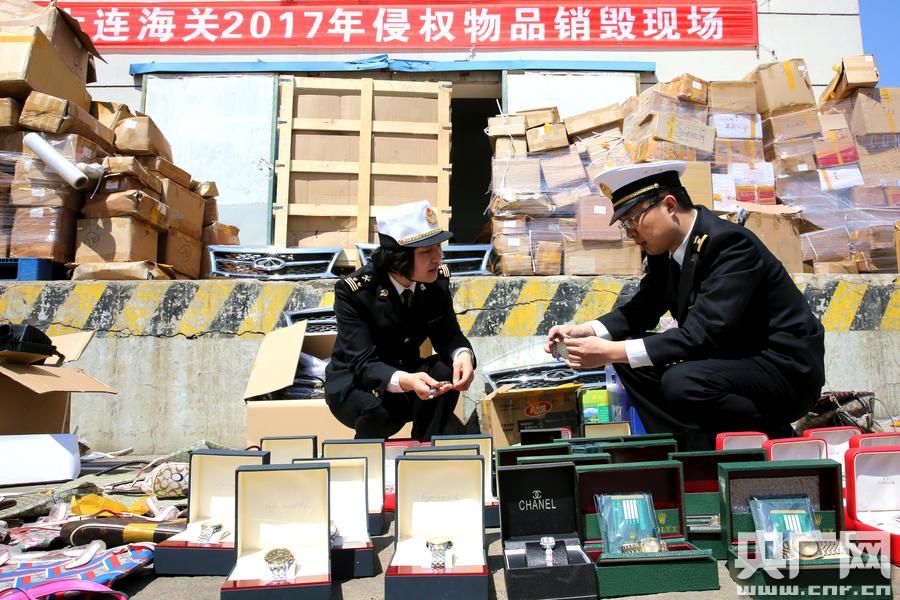 大連海關(guān)銷毀侵權(quán)貨物12萬(wàn)余件(央廣網(wǎng)發(fā)林戈攝) 據(jù)介紹,此次銷毀的侵權(quán)貨物主要包括汽車零部件、手表、箱包和電子產(chǎn)品等消費(fèi)類商品,涉及奇瑞、香奈兒、迪奧、COACH、GUCCI、勞力士、浪琴、歐米伽、巴寶莉、惠普等多個(gè)國(guó)內(nèi)外知名品牌。其中本次銷毀的汽車零部件涉及的“哈爾濱某公司侵犯奇瑞商標(biāo)權(quán)案”是近年來(lái)大連海關(guān)在貨運(yùn)渠道查獲的侵權(quán)貨物數(shù)量最多、案值最大的一起侵犯自主知識(shí)產(chǎn)權(quán)案件。 -