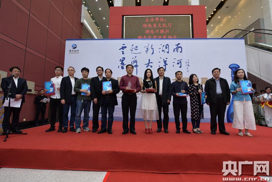 央廣網(wǎng)長沙4月28日消息(記者傅蕾 通訊員劉燦輝)4月28日,“云起新湖南 墨舞大洋河”---湖南首屆中青年書法大展開幕式在湖南省文化館舉行,并對28位優(yōu)秀作品的獲得者現(xiàn)場頒獎。自此,這場備受矚目和期待的書法展正式拉開帷幕。