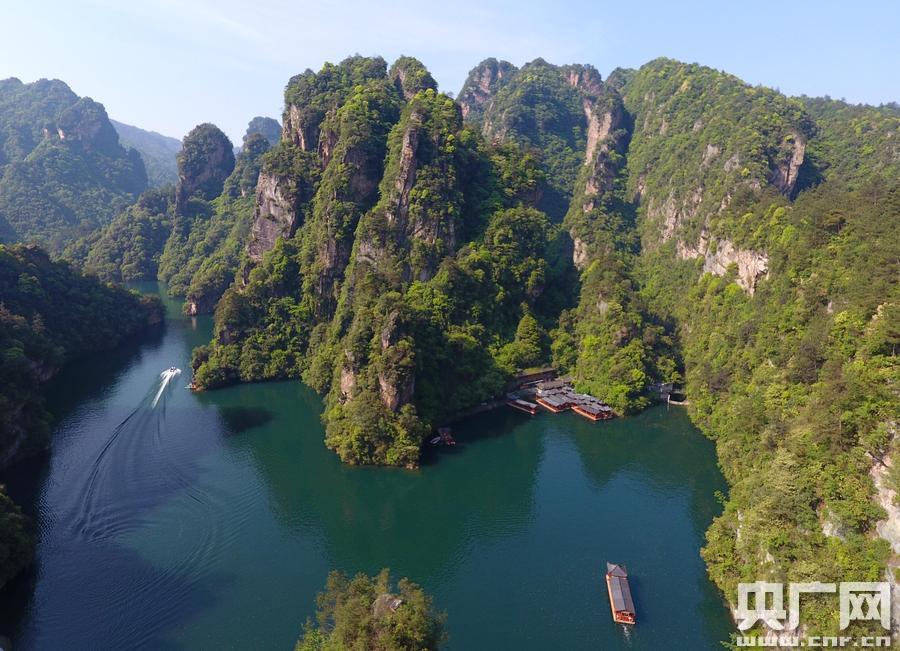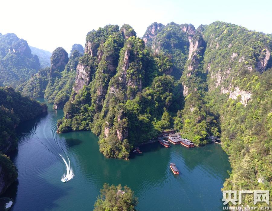 •    吳勇兵攝   央廣網(wǎng)張家界4月30日消息(記者傅蕾 通訊員吳勇兵)4月29日,“五一”小長假第一天,湖南張家界武陵源風(fēng)景區(qū)天高云淡,峰林綠染,溪湖碧清,吸引各地游客前來享受輕松愜意的“五一”假期。