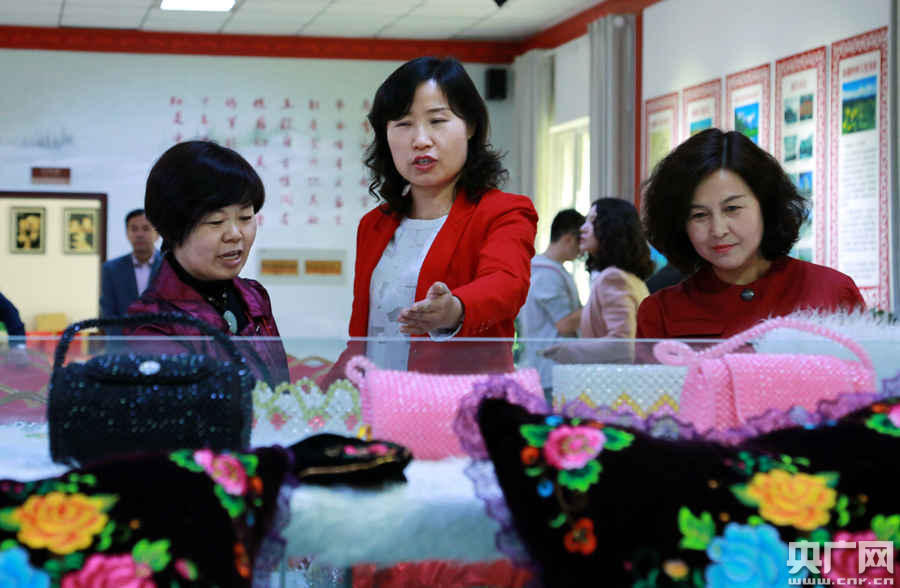 參觀少數(shù)民族手工作品(央廣網(wǎng)發(fā) 董基春攝) 該中心占地600多平米,設(shè)焉耆歷史廳、焉耆縣情廳、民族團(tuán)結(jié)餐廳、家風(fēng)家訓(xùn)廳、榜樣模范事跡廳、綜合展廳等六個部分。 -